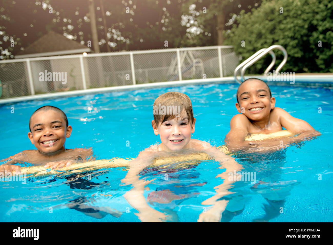 A Children Group In Outside Swimming Pool Stock Photo Alamy